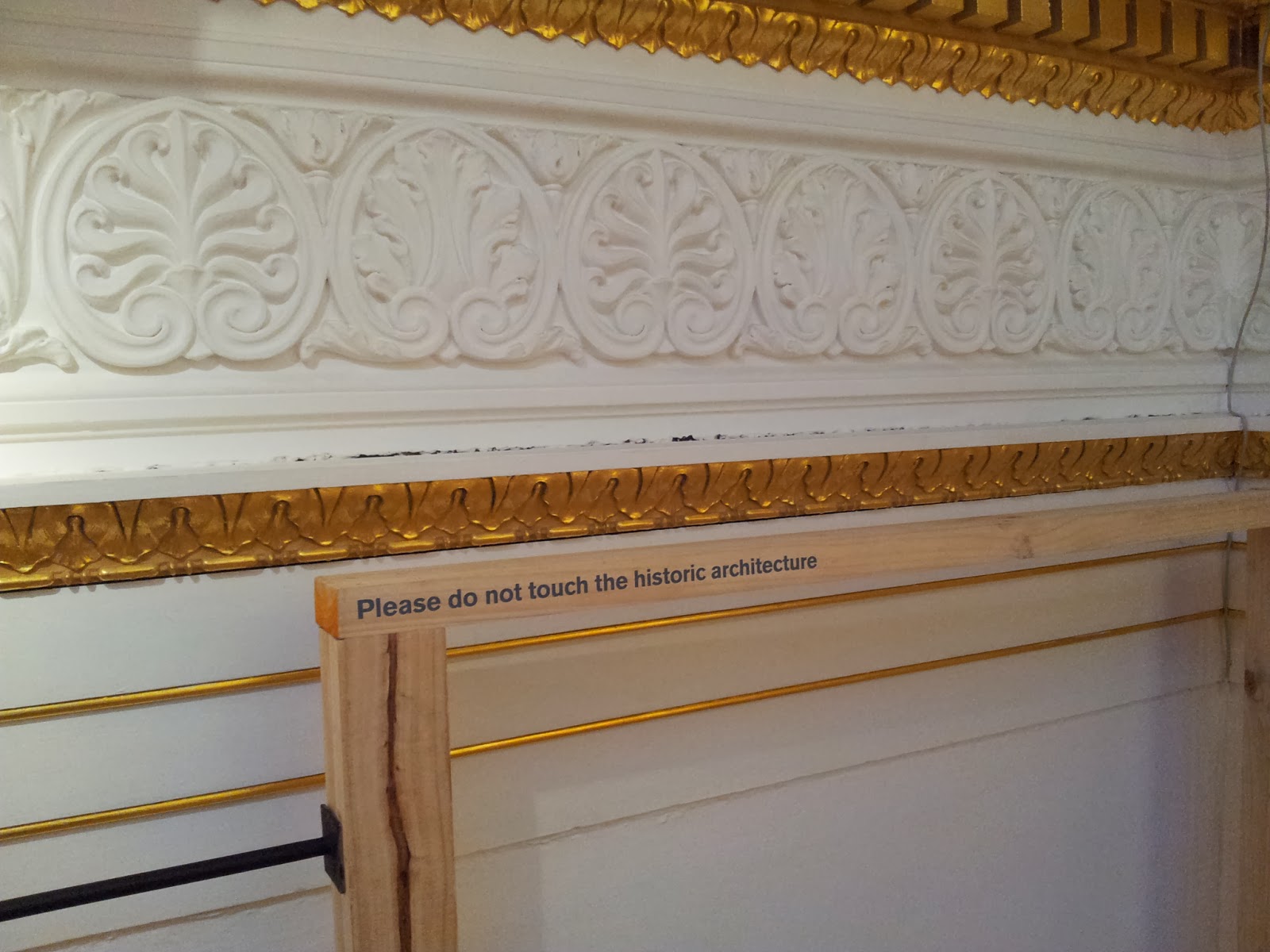 Yet once you got close to Pezo Von Ellrichshausen's structure, you were invited to climb inside up sets of winding staircases leading you right to the ceiling, up close to the cornices and covings. Although, at this point, unfortunately we were also told, this was one aspect of the installation we were not invited to sense.